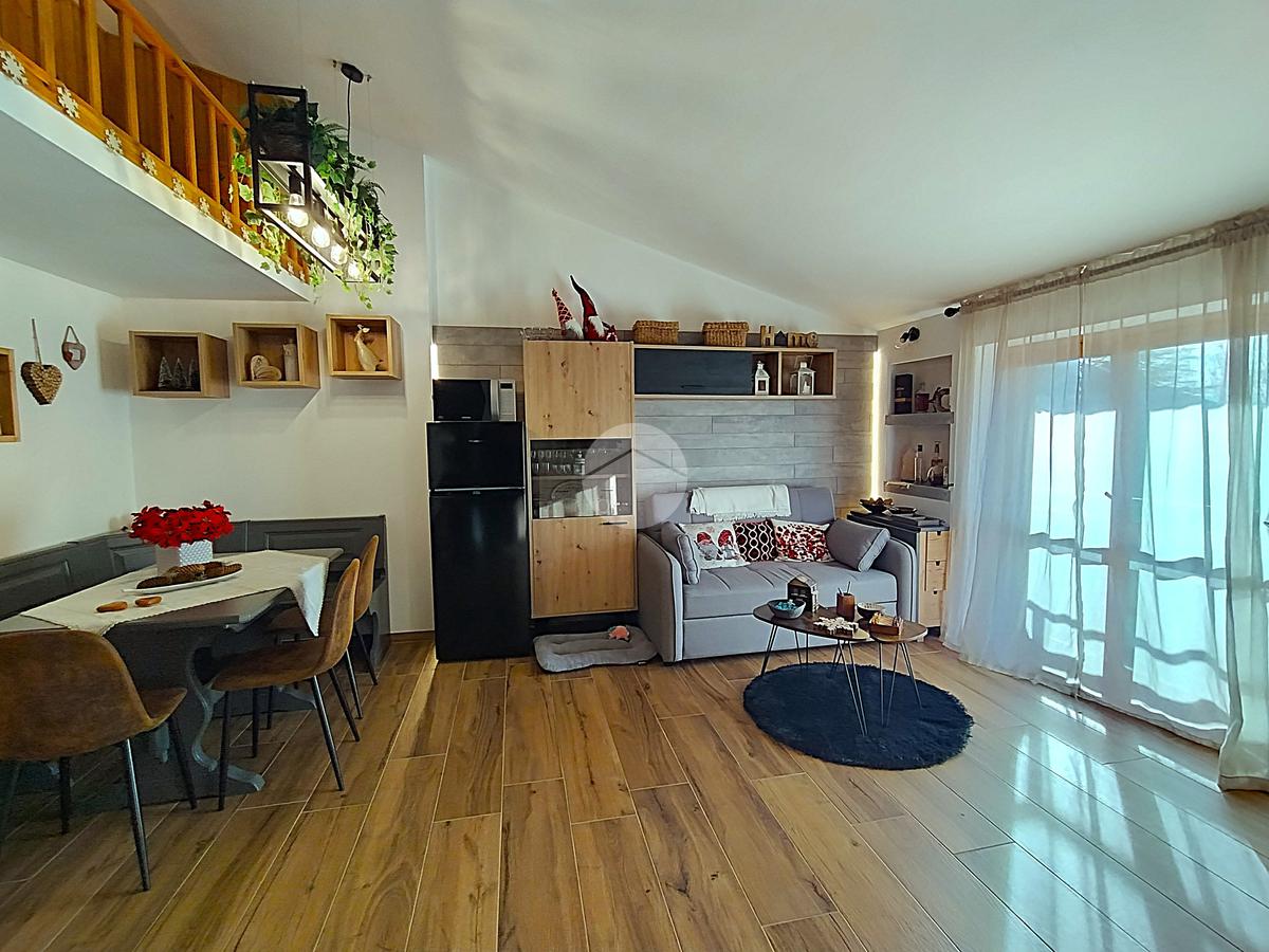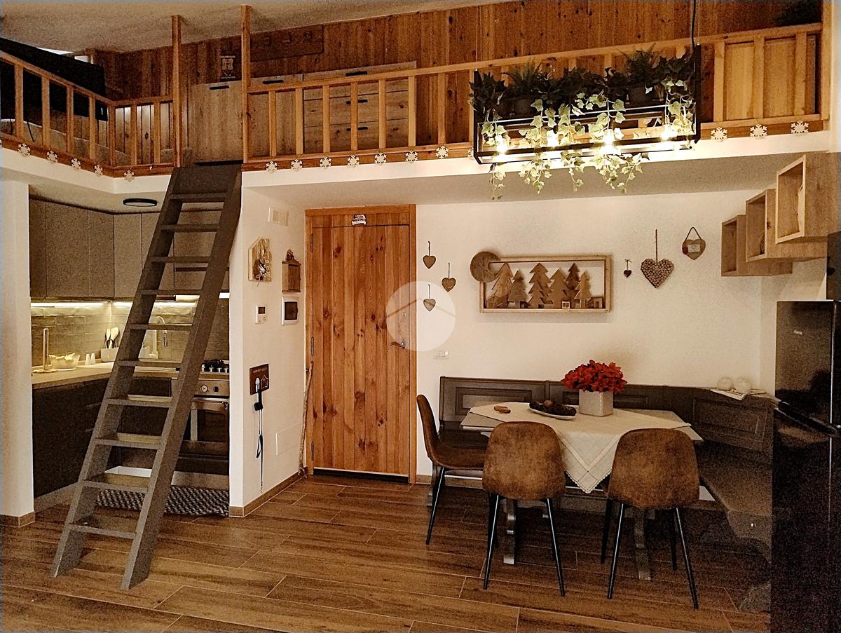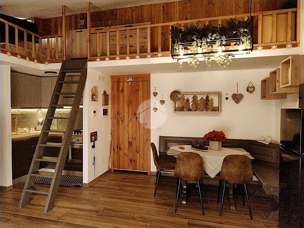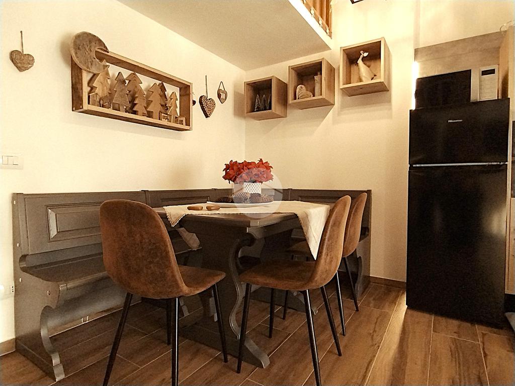 L’appartamento è composto da un soggiorno con divano letto e camino, cucina a vista, tavolo da pranzo e balcone, una camera matrimoniale con letto contenitore ed un balcone, un bagno con doccia. Un soppalco ospita un altro letto da una piazza e mezzo. L’appartamento è riscaldato e/o raffrescato da impianto canalizzato con pompa di calore. Ottima l'esposizione.