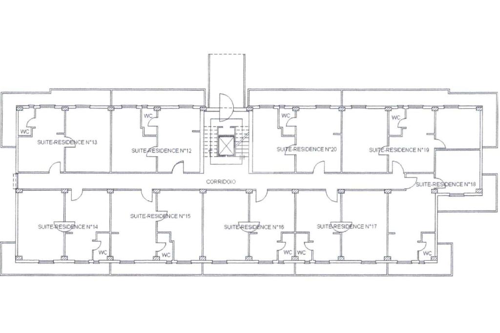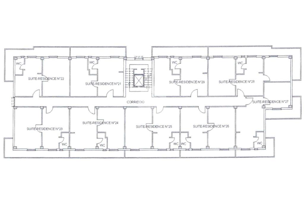 In tutto, distribuite sui quattro piani, 32 suite con soggiorno e cucina a vista, camera matrimoniale e bagno e 4 suite con soggiorno e cucina a vista, camera matrimoniale, cameretta e bagno. Le camere al secondo, terzo e quarto piano sono tutte con balcone, gli infissi esterni sono in alluminio e doppio vetro, quelli interni in legno tamburato, alle scale le porte REI e il sistema antincendio. Ogni camera è dotata di impianto di riscaldamento autonomo radiatore individuale modulante a metano o GPL. I metri quadri totali approssimativi dei cinque piani sono circa 2.500. Completa la proprietà un terreno di 200 metri quadri.